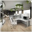 ELIMINATE DISTRACTIONS: Each L shaped computer desk has a tall 63-inch panel for privacy and focus as well as a smaller 48-inch panel for easy communication. The fabric-covered privacy panels can be installed on either side for a custom office layout.
