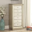 Product Detail The Talor Jewelry Armoire by Acme Furniture will be a functional and stylish addition to any bedroom. Handsomely crafted in an Antique Gold finish, composed from selected woods and veneers. The armoire features storage drawers perfect to keep small items organized; the top cover opens up to reveal a hidden mirror and multiple jewelry storage compartments; two side jewelry storage doors include hooks for necklaces.