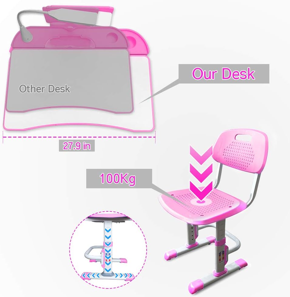 Safe & Sturdy Construction: Kids desk and chair set are made of high quality PVC panels, sturdy iron frames, more safer and stability, Perfect Birthday or Christmas gift for your child.