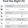 Product Dimensions: 24.2 x 24 x 34.8 – 38.6 inches (LxWxH); seat width: 20.1 inches; seat depth: 16.5 inches; seat back height: 18.7 inches