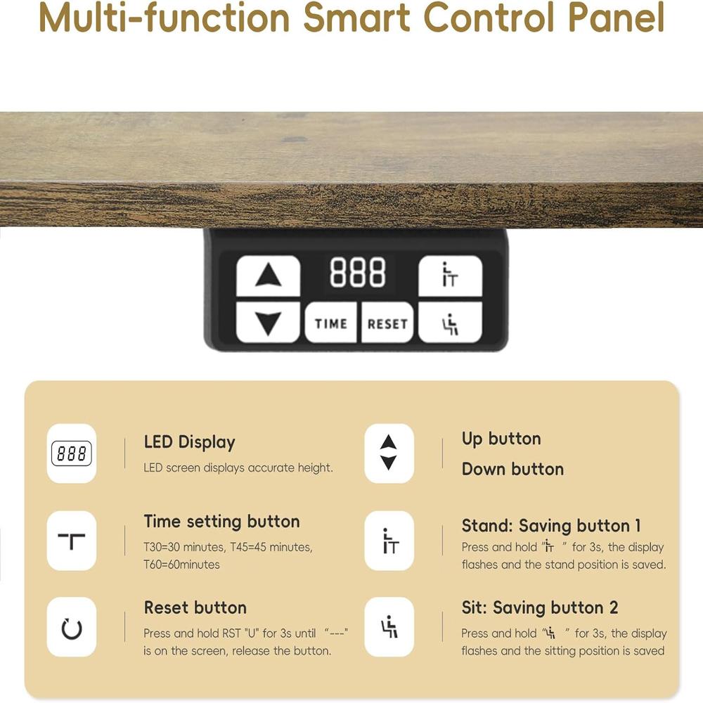 Agile and Stable Lift System:  Equipped with an intelligent electric lifting system, this desk ensures smooth and swift adjustments. The sturdy steel frame supports up to 154 lbs and features a motor tested over 50,000 times for reliable long-term use.
